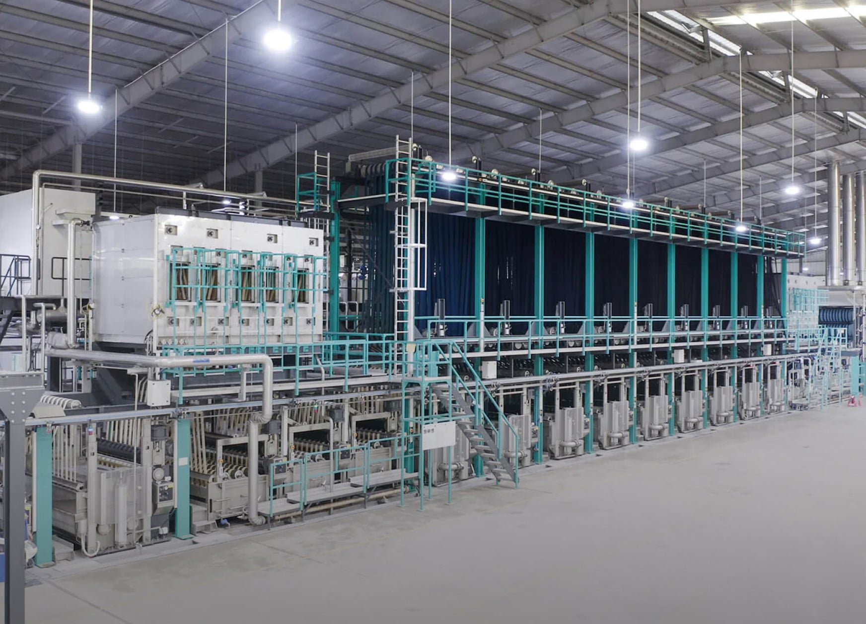 The one hundred sixty rapier looms from Picanol, Italy. Coupled with knotting and drawing in from Groz Beckert, Germany. Allow for high speed precision weaving, and creating the best quality woven fabrics ready for denim and PFD weaving.