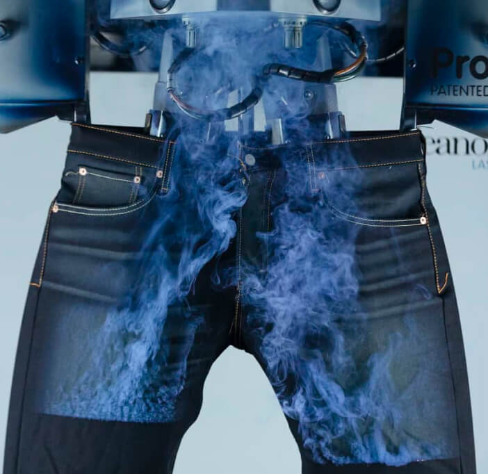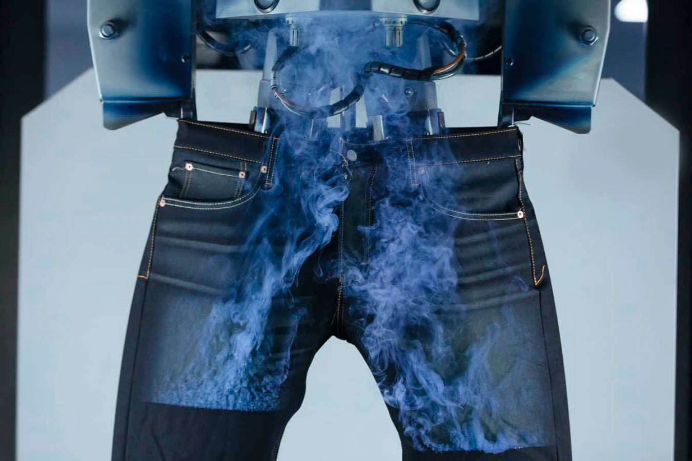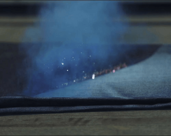 After the laser detailing, jeans move on to the wash process. Ozone acts as a mild bleaching and sterilizing agent, cleaning the jeans and giving them the desired color. In this process regular air is turned into ozone gas.