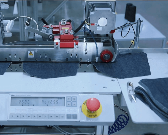 Semi-automatic sewing allows for a much quicker process than traditional sewing, while maintaining low energy consumption and the ease of quickly switching shapes and styles. This gives each pair of jeans the final touch and branding before being sent to customers.