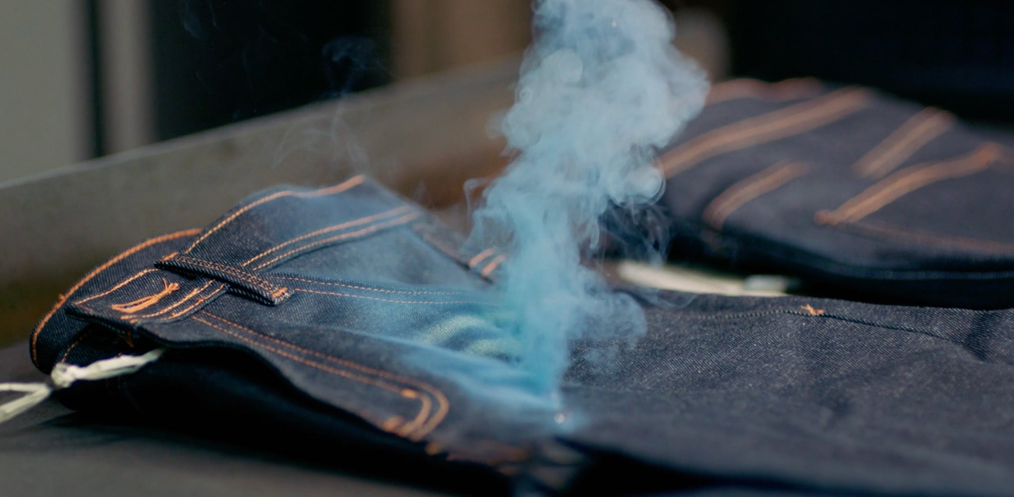 After the laser detailing, jeans move on to the wash process. Ozone acts as a mild bleaching and sterilizing agent, cleaning the jeans and giving them the desired color. In this process regular air is turned into ozone gas.